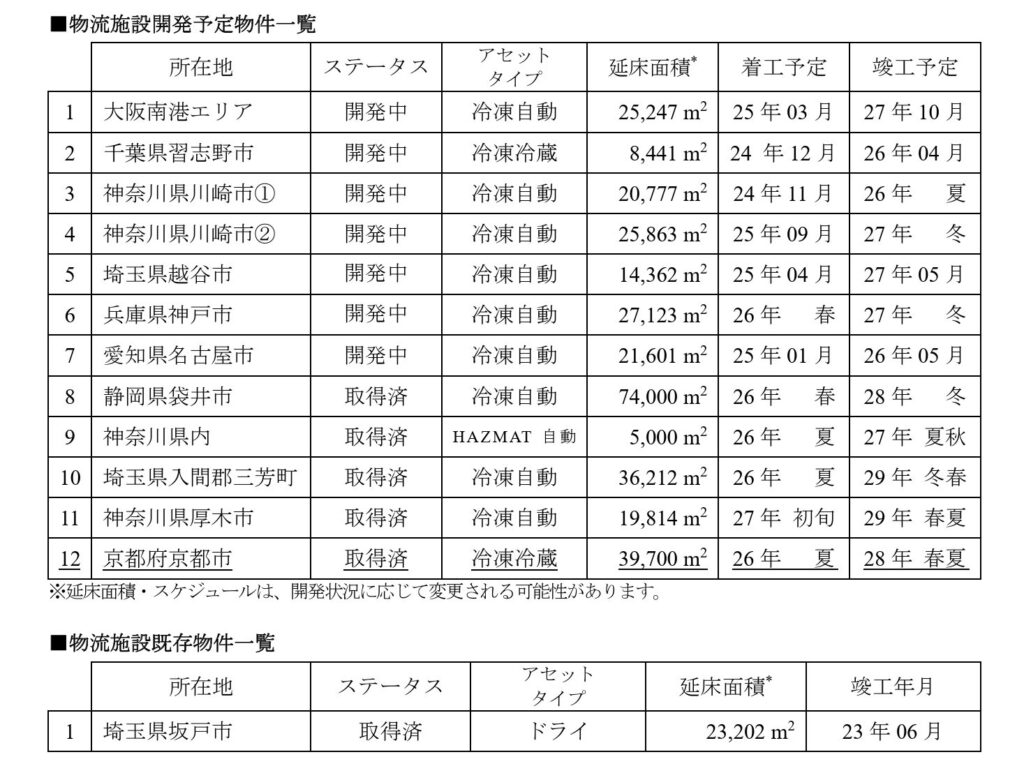 当社は、2030 年のフロン規制に向けた冷凍冷蔵倉庫の設備投資、冷凍食品の消費増加による冷凍冷蔵倉庫の需要拡大、および2024年問題に起因する労働力不足、就業者の高齢化等の物流業界の課題に対応すべく、冷凍冷蔵倉庫および冷凍自動倉庫の開発をおこなっております。このたび、当社の物流施設ブランド『LOGI FLAG』の開発用地を、新たに販売用不動産として取得いたしました。。