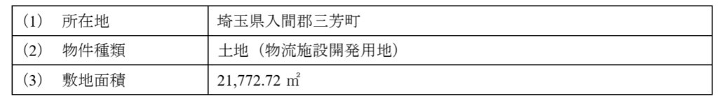 霞ヶ関キャピタル株式会社(本社:東京都千代田区、代表取締役社長CEO:河本幸士郎、以下「当社」)は、当社が開発用地のソーシングおよび企画立案をおこなった埼玉県入間郡の物件につきまして、本日、合同会社LOGI FLAG 13号に売却いたしましたので、下記のとおりお知らせいたします。